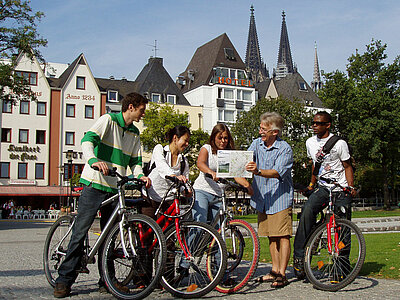 Als Neu-Kölner*in möchten Sie sicher zunächst die Stadt und ihre Umgebung entdecken. Einen ersten Überblick erhalten Sie bei unseren geführten Rundgängen, z. B. durch die Altstadt und das Kneipenviertel. Und solange Sie noch nicht so gut Deutsch verstehen, gibt es die Erklärungen auch auf Englisch oder Französisch.