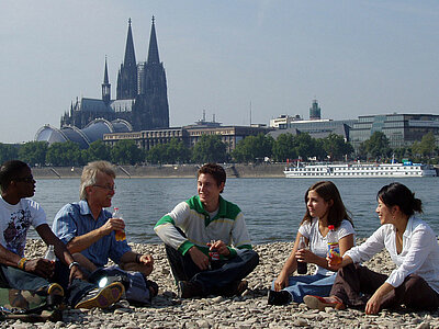 Köln ist eine Stadt mit vielen Grünanlagen und Parks. Dort veranstalten wir im Sommer gemeinsame Grill-Abende. Spaß bringen auch kleine Fahrradtouren am Rhein entlang. Im Rahmen von Halbtages- und Tagesausflügen lernen Sie mit anderen Sprachkursteilnehmer*innen das Umland kennen, z. B. bei einer Schiffstour auf dem Rhein, einer Weinprobe an der Mosel oder Ahr oder einer Stadtbesichtigung in Aachen. Mehrmals im Jahr organisieren wir Ausflüge ins benachbarte Ausland, z. B. in die Niederlande oder nach Belgien.